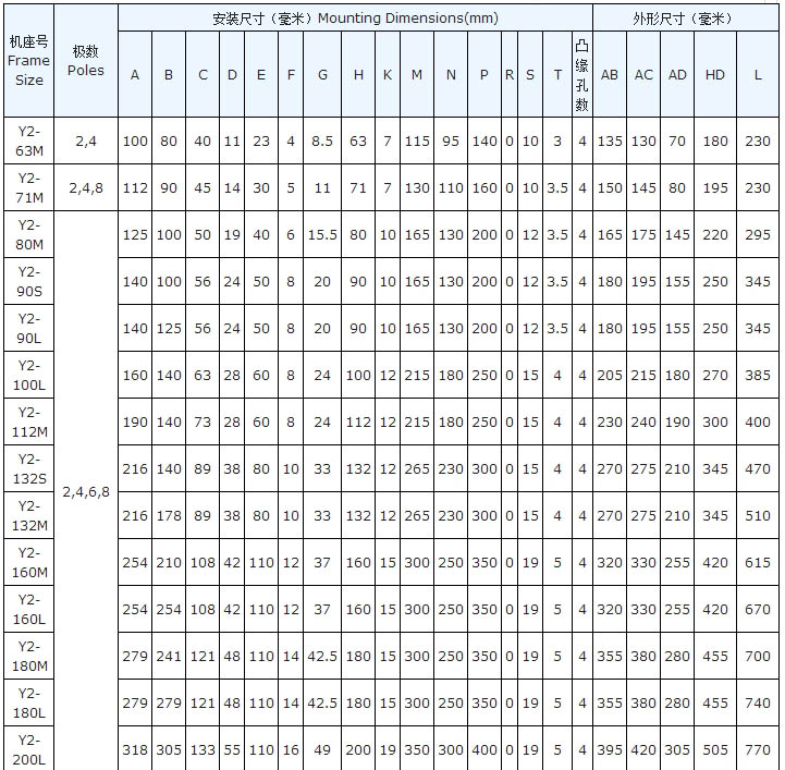 Y2 系列三相异步电动机具有结构新颖、造型美观、噪音低、振动小、绝缘等级高等特点。